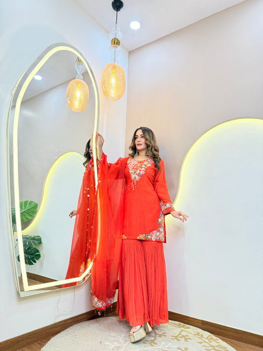 RED OUTFIT SHARARA SUIT