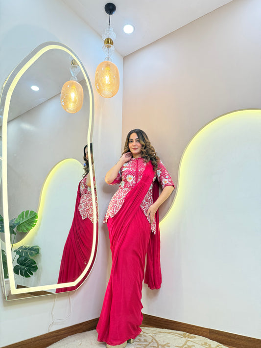 "RED PINK OUTFIT " DRAPE SAREE